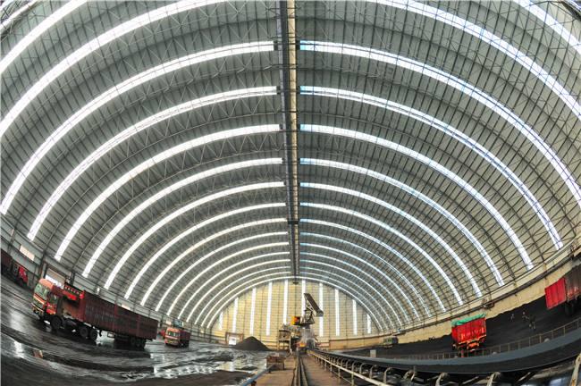 堆场料场封闭式主体结构为新型的钢五指山网架结构,维修结构为钢结构五指山不锈钢板和纤维增强塑料灯具,其外形以五指山网架式和平板为主,连接柱五指山施工自由,设置喷雾自动喷水系统,从而可以实现棚内所有物料的覆盖,减少物料在运输过程中的损耗,起到防尘的作用,减少工厂关闭后的二氧化硫排放量,50mg/m3颗粒排放量小于10mg/m3,非常适合低能耗。低闭库自动感应反应对库存轮胎进行清洁,确保轮胎不受道路污染;封闭的储存区可从源头控制粉尘污染,控制无序排放。